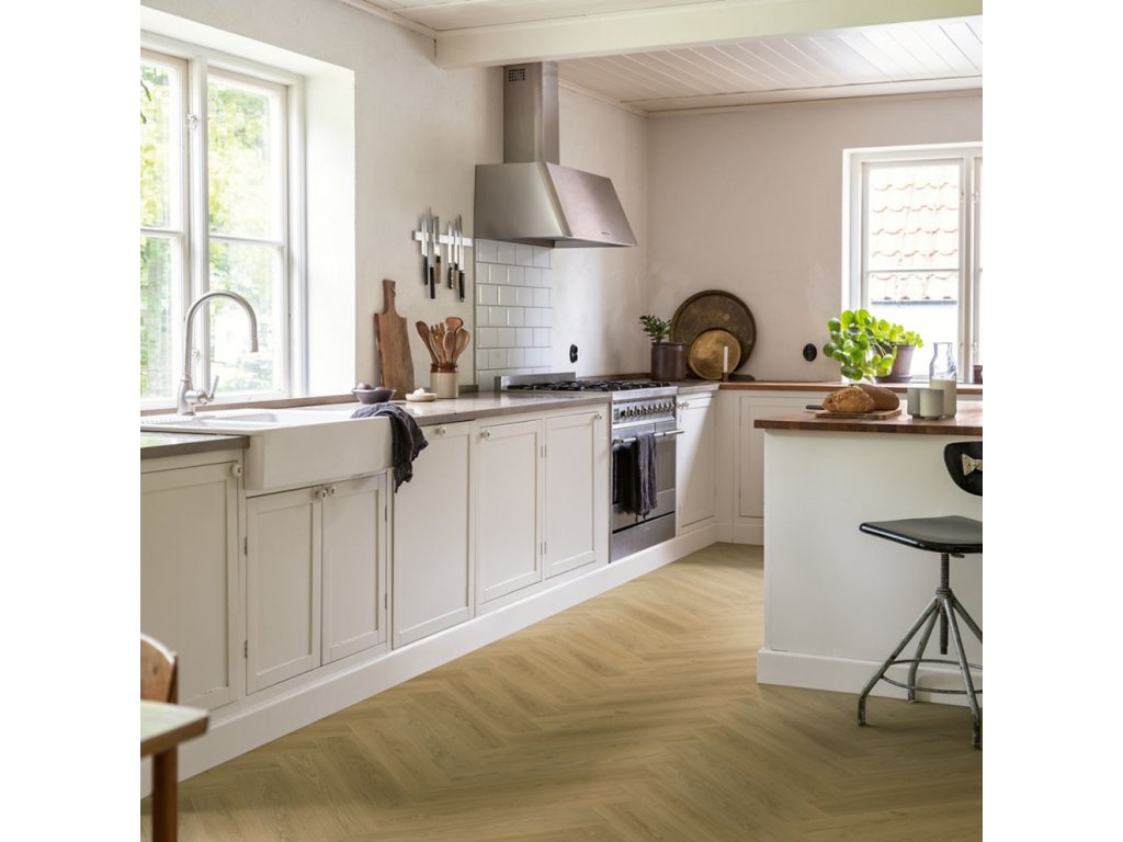 Pergo Vorma pad má moderný dizajn rybích kostí v teplom stredne dubovom tóne, ktorý vyžaruje nadčasovú eleganciu. Jemné uzly a jemné praskliny dodávajú prirodzený šarm a charakter, pričom zachovávajú čistý a sofistikovaný vzhľad. Jemná drevená konštrukcia tejto vinylovej podlahy poskytuje realistický vzhľad a pocit. Veľkorysá veľkosť dosiek na vinylovej podlahe Vorma s rybou kosťou dodáva vašej izbe pocit luxusu. Podlaha je veľmi odolná, s extra pevným jadrom a vynikajúcou vrchnou vrstvou, ktorá poskytuje vysokú odolnosť voči škrabance, škvrnám a opotrebeniu. Vorma je úplne nepremokavá, čo z nej robí skvelú voľbu aj do kuchyne alebo chodby. S Unizip® klikacím systémom je možné dosky Vorma Pad Pro jednoducho zacvakávať dosky, bez problémov so sledovaním pravého a ľavého dosky. Dosky Vorma majú tiež integrovanú podložku, čo ešte viac urýchľuje a uľahčuje inštaláciu.